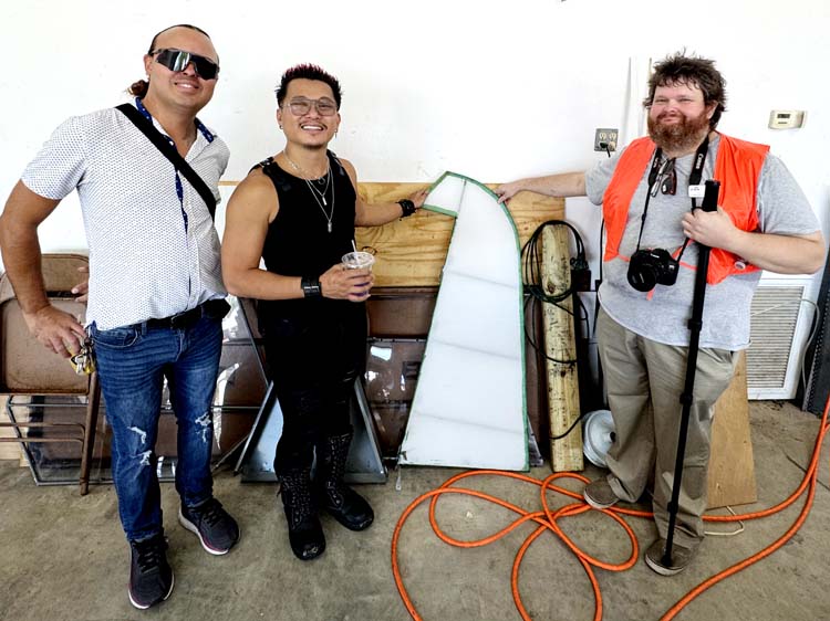 L-R: Andres Gonzalez and Kelvin Nguyen listen to Robert Hallock from EEA Chapter 797, explain about their work in putting together a plane that was donated in parts. They are re-building the wings from scratch and are talking about the rudder that was donated. -SVT Photo
