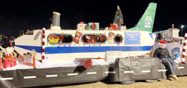 The Speer Aviation float (Above) won First Place Commercial in the Lighted Christmas Parade last Friday. Owner Stephanie Speer said there were 12 Young Eagles inside the float. -Photo by Speer Aviation