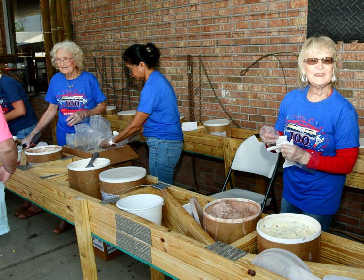Longtime employees L-R: Betty Touchton, Maria Jimenez and Bonnie Mosely scooping ice cream for the many attendees. -Photo by Rob Wolfe Photography