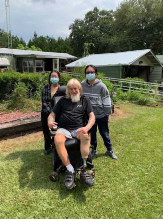 Above Photo: One of the recipients enjoying the home delivery of food is Ron, of Live Oak, shown above, with Jennifer and Stephanie Chen. -Photo Submitted