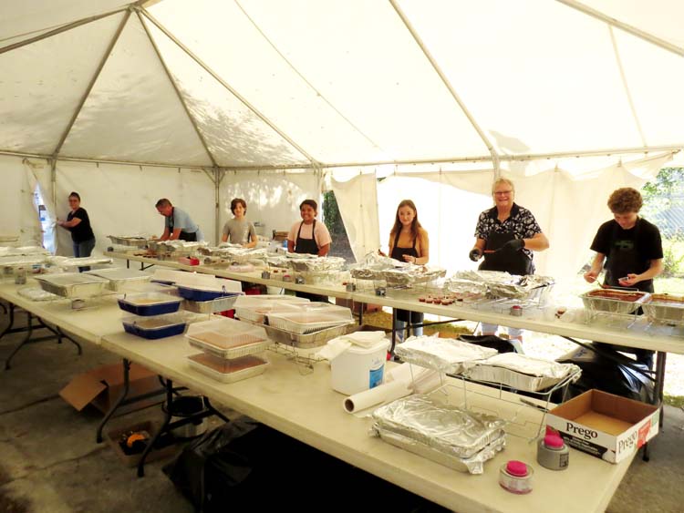 Volunteers were busy getting chili and cornbread samples ready for hungry voters lined up outside the tent. Donna Denton organized the chili and the cornbread cook-off. -SVT Photo by Tami Stevenson