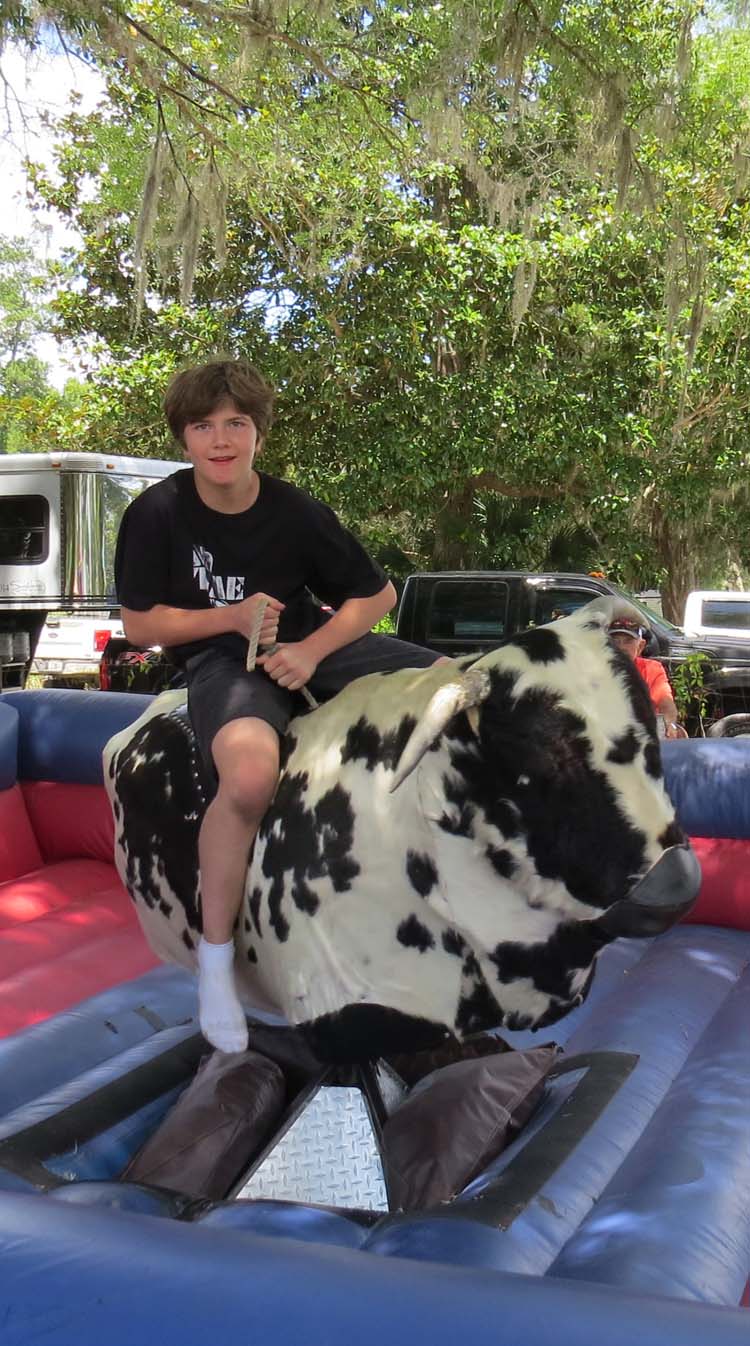 Gavin Lasko, Annita Leonard’s grandson, of Live Oak, is riding the bull. Gavin is an animal enthusiast and wants to be a vet or vet tech when he grows up. He is going into the 10th grade and attends Faith Academy in Lake City.