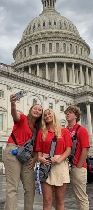 PHOTO: L-R: Sarah Welch, Ella Hancock and Elijah Dockery snap a photo in front of the Capital Building in Washington D.C. -Courtesy Photo