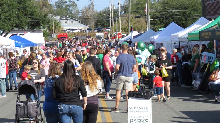 Visitors checking out the vendor booths along Pine Avenue SW during a previous Christmas on the Square event in Live Oak. -SVT Archived Photo