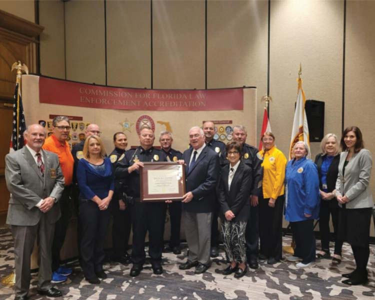 Pictured Above: Chief Gerald Butler along with the Accreditation Manager Greg Burnsed, Accreditation team member Officer Erica Johns, members of Command Staff, the Citizen’s Police Academy Alumni, City Government Officials, and CFA Members.