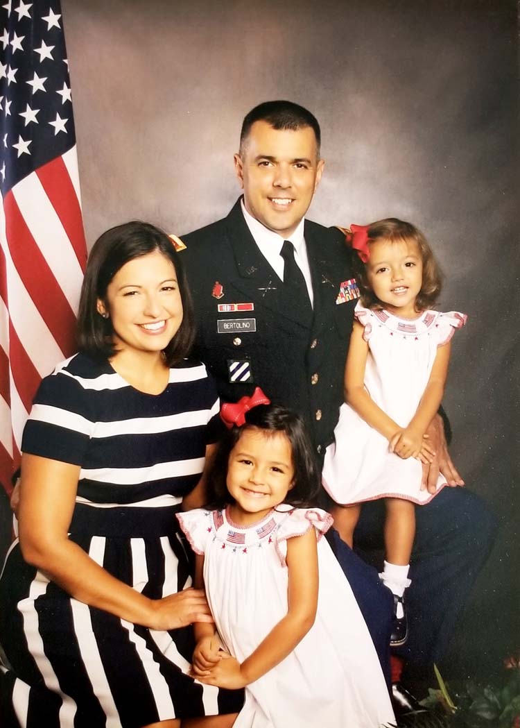 Major James Bertolino, with his wife, Laramie, and their daughters, Amelia James and Hadley Carter. -Photo: Submitted by Paul & Barb Bertolino