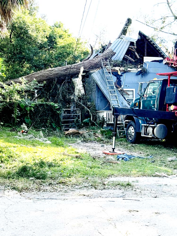Tree limbs being removed from the Roddenberry home, Saturday, after Hurricane Helene brought wind gusts of 118+ mph to the Live Oak area. -SVT Photo by Tami Stevenson