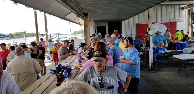 Veterans and volunteers enjoyed visiting after a good day of fishing in the gulf at the October 5, 2019 Hooked on Heroes fishing trip. -SVT Archived Photo by Tami Stevenson