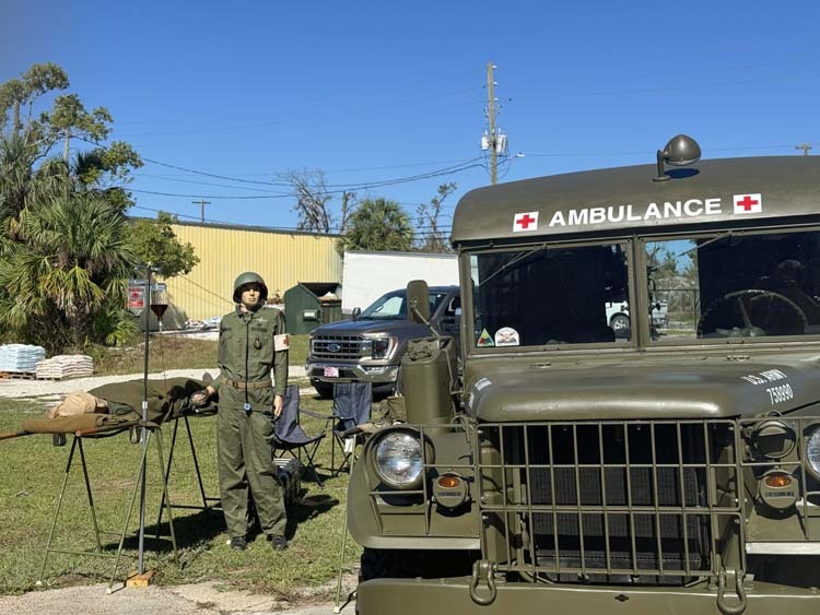 This military ambulance on display came with a combat Army medic and wounded soldier.