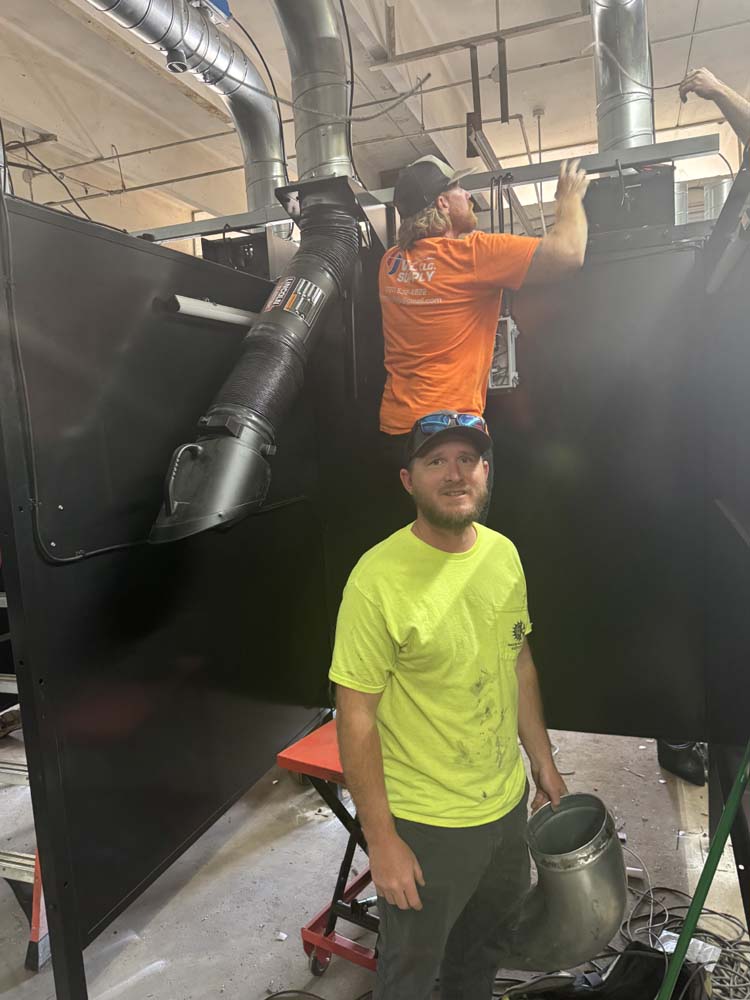 Matt and Austin, from Lincoln Electrics are installing the booths. Matt said they do a lot of sub-contracting for the southeastern region. -SVT Photo