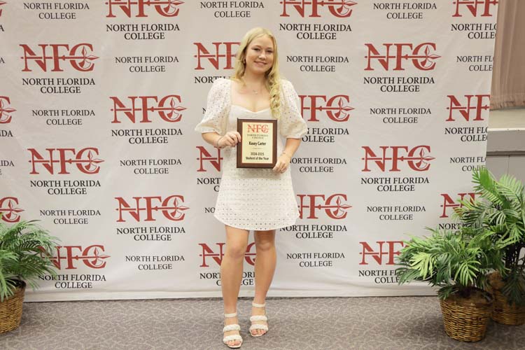 “The Student of the Year embodies the NFC Sentinel Spirit through high academic achievement, campus engagement, service to others and exemplary character,” said Jennifer Page, NFC Vice President of Academic and Student Affairs. “As a dual enrolled student with Hamilton County High School and North Florida College, Kasey has demonstrated a level of professionalism, organization and dedication that goes far beyond what is expected of a high school student.”