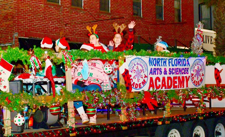 North Florida Arts & Sciences Academy (NFASA) float during the Lighted Christmas Parade - Photo by Rob Wolfe Photography