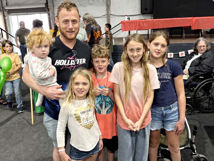 A family affair - L-R: Baby Ellawyn, held by her father Philip Hart, Avonlea Hart, Lawson Hart, Jillian Hart and Adaline Hart. Jilian was also a contestant in the pie eating contest (2nd from left). -SVT Photo