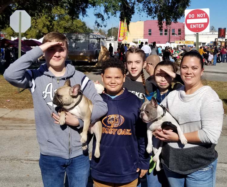 L-R: Robert Davis Gavyn Jenkins, Marah Davis, of Lake City, Brileigh Sellers, Brandy Sellers, of Live Oak. Their French Bulldogs, Batman (left) and Aria were enjoying seeing the people and discovering all the new smells. Brandy said they come every year and were glad they had it this year in spite of COVID.