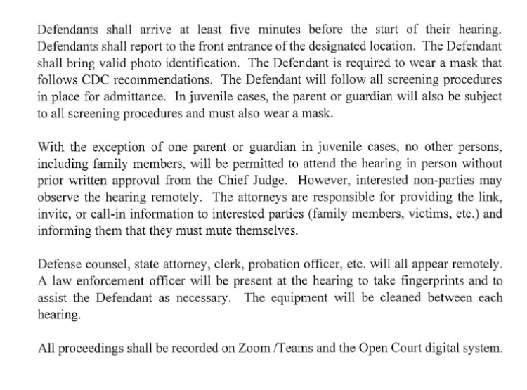Cessation of in-person court proceedings in Columbia and Suwannee County