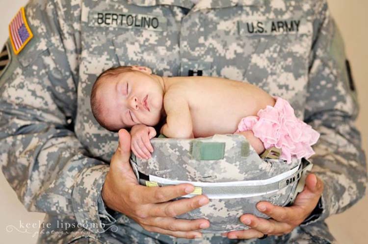 Amelia James Bertolino sleeps soundly, safe in Daddy’s helmet. They titled the photo, “The Battle Begins.”