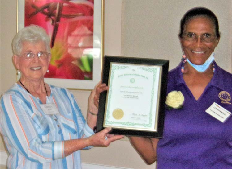 Carol Beasley was presented with an Honorary Membership Award by President Shirley Reaves. -Photo: Submitted