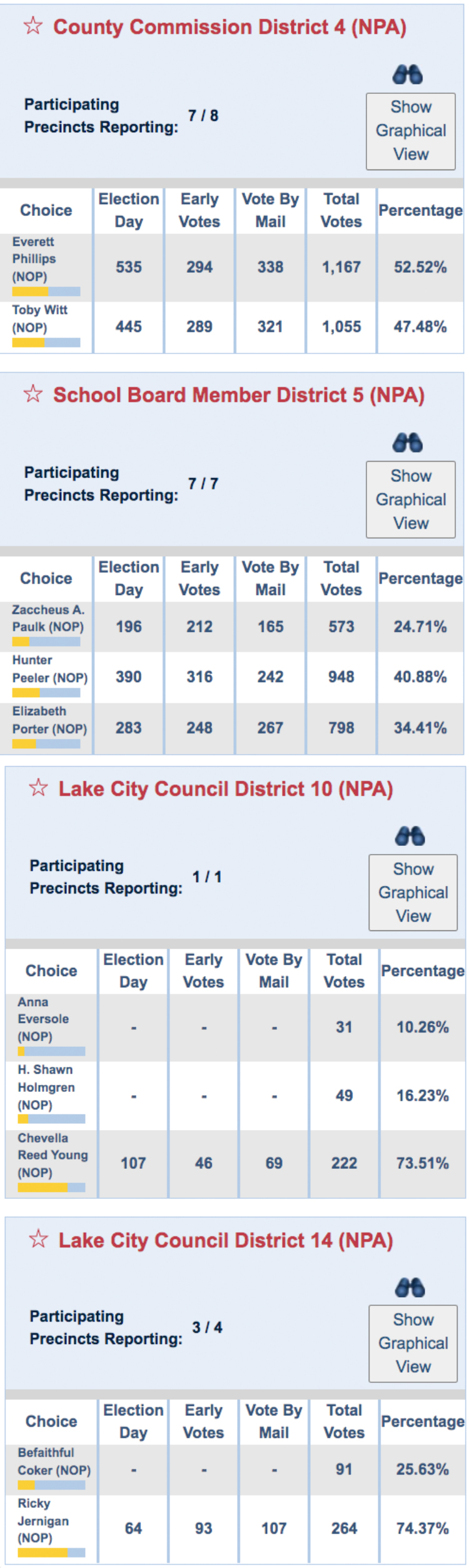 Information taken from the Columbia County Supervisor of Elections