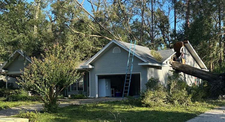 Another dwelling in Riverwood Subdivision that sustained catastrophic damage when a tree fell through their home as a result of Hurricane Idalia. -Photo: Lee McGauley