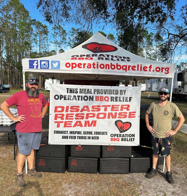 Operation BBQ Relief was setup at the Dowling Park Church of God. They prepared and provided approximately 2400 hot meals per day. Pictured are Kenny Alexander, left, with Brian Randolph.