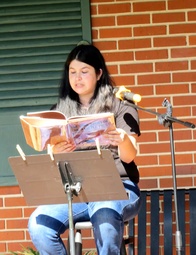 Curlen Williams from Texas Roadhouse in Lake City, was on the back porch reading The True Story of the Three Little Pigs to children with such enthusiasm, one couldn’t help but stop and listen. She said she read this story to her daughter almost every night before she went to bed and was her favorite.