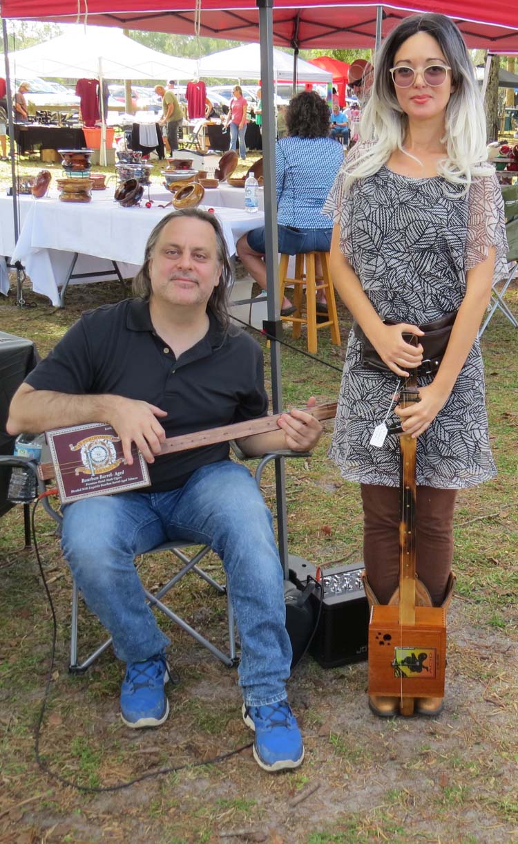 Vendor Liza Seigido (left) was selling cigar box guitars she built herself. Lawrence Moore said he helps with the sanding but everything else she creates herself. Both are new to Suwannee County.