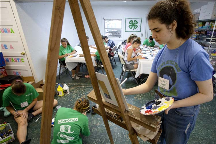4H youth participating in a painting class at 4H Camp Cherry Lake. Photo taken 06-08-19. -Photo: UF/IFAS, Tyler Jones
