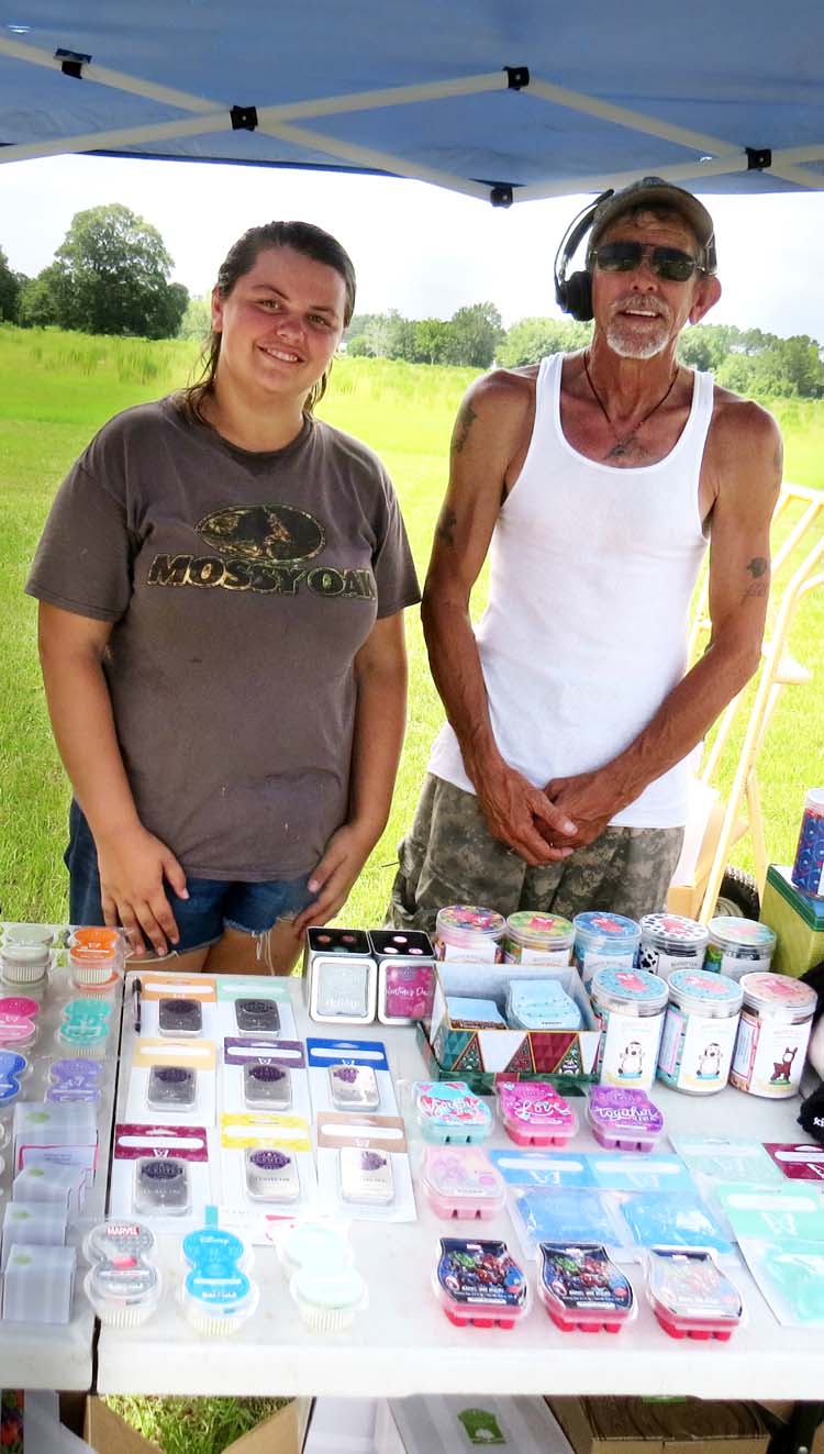 Farm Owner William Henely, left, with step daughter, Marissa Savey, at their Scentsy booth last Saturday.