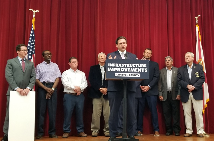 Governor Ron DeSantis with Hamilton County Officials, during a press conference in Jasper, Florida, April 5, 2022 -SVT Photo by Tami Stevenson